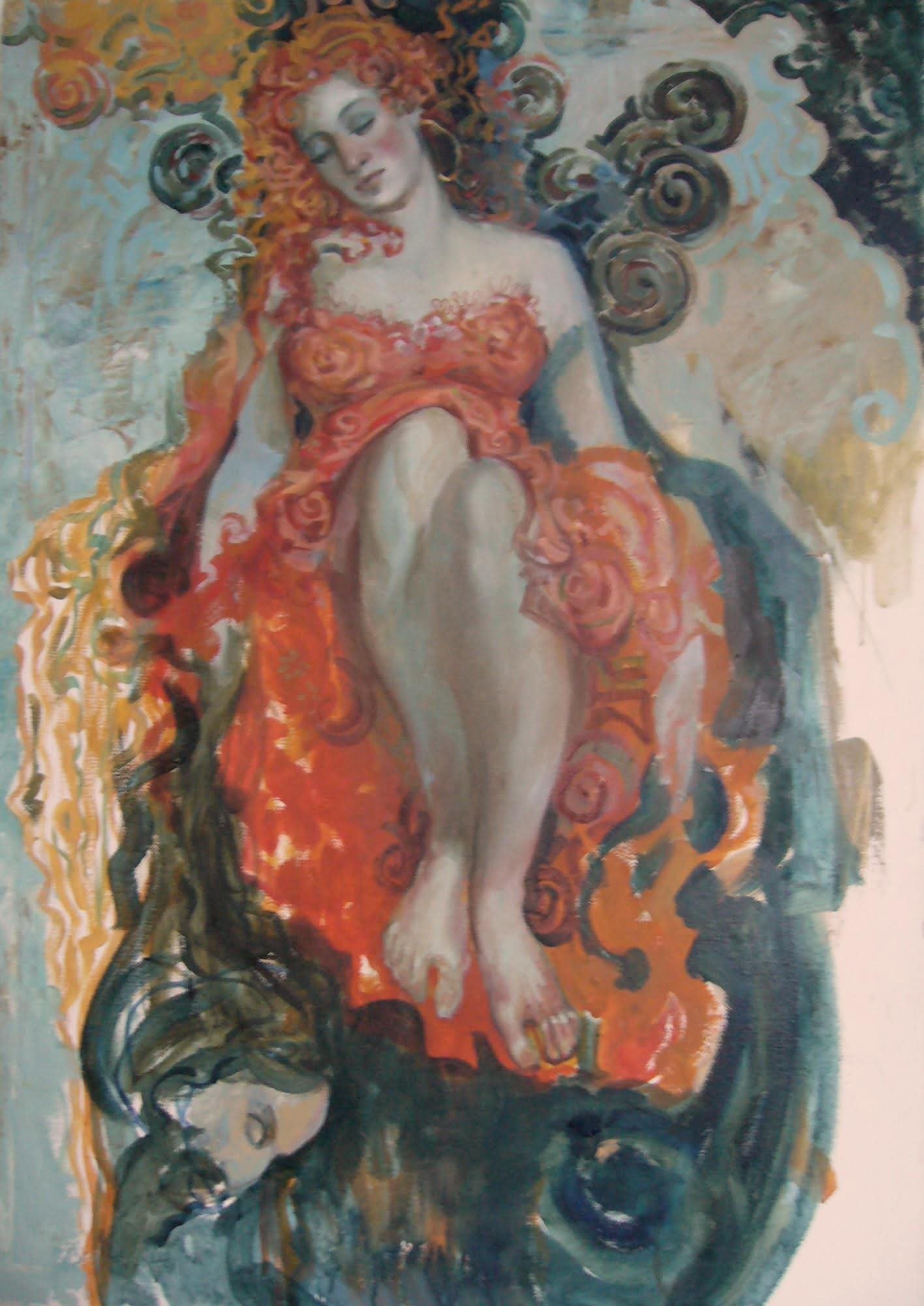 Această lucrare abstractă și onirică explorează tema tranziției interioare și a curajului de a păși în necunoscut. Un pe...