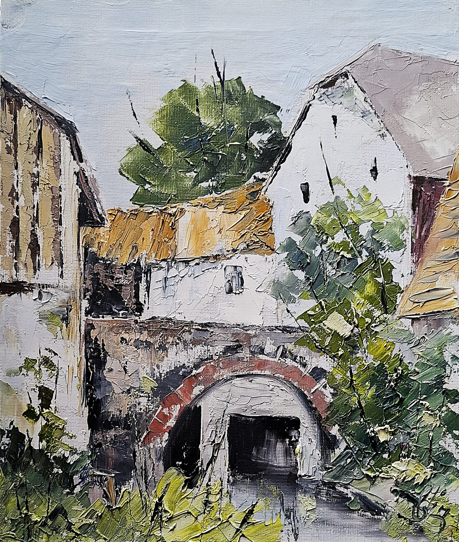Tabloul surprinde liniștea verii într-un colț rural, unde casa morarului veghează asupra apei ce curge domol. Lumina caldă a anotimpului se reflectă în zidurile albe și în verdele viu al naturii, evocând un sentiment de tihnă și continuitate. Atmosfera este una de armonie între om și peisaj, un elogiu adus simplității vieții de la țară și legăturii strânse cu elementele naturii.