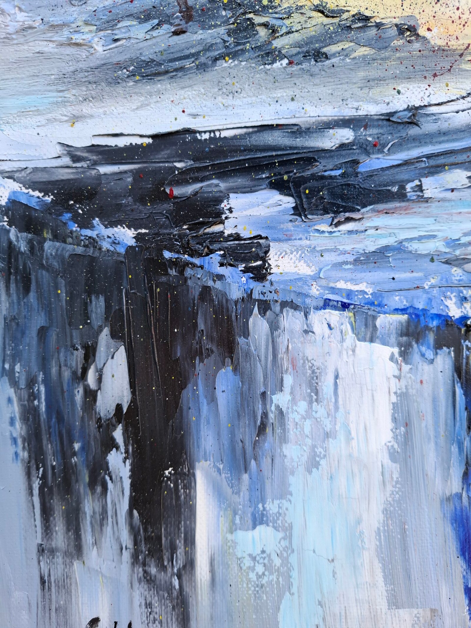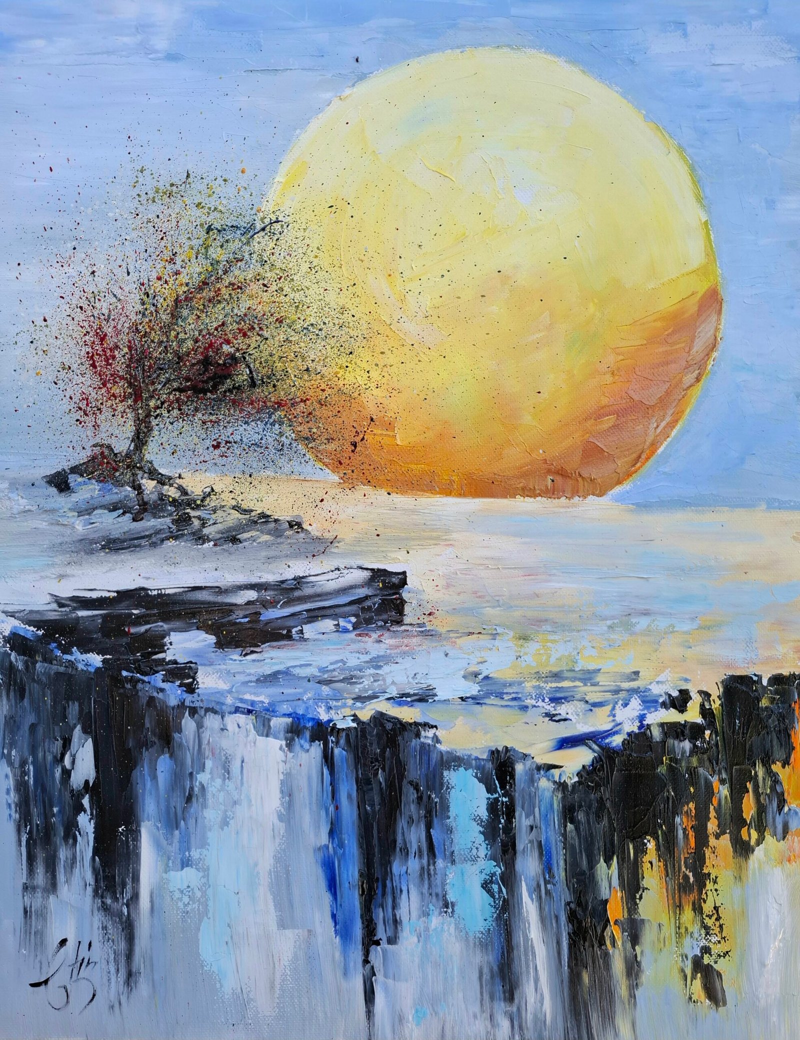 Această lucrare surrealistă evocă un peisaj dramatic, unde un copac solitar se luptă cu forțele unei stele prea aproape. Pictura surprinde un moment suspendat între frumusețe și destrămare — un colț de stâncă rece, texturat în nuanțe de albastru și negru, găzduiește un copac ale cărui frunze se transformă în particule colorate, purtate de vântul cosmic.